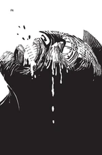 | Marv's face is covered with blood, but the blood is in black & white. |